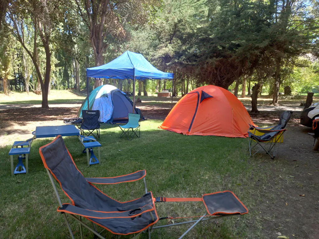La carpa es muy simple y rápida de armar, ya que sólo posee 2 varillas con enganches tipo clip. Armada mide (2,1+0,7) mts. (fondo) x 2,8 mts. (frente) x 1,6 mts. (alto).